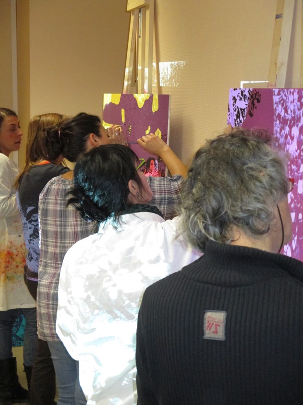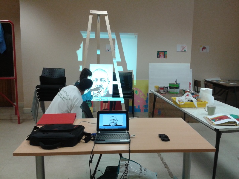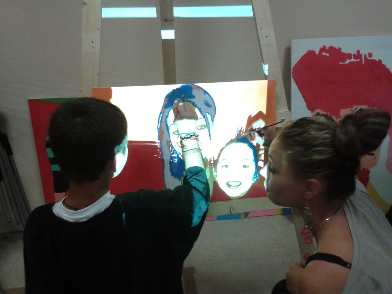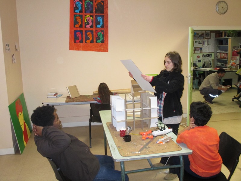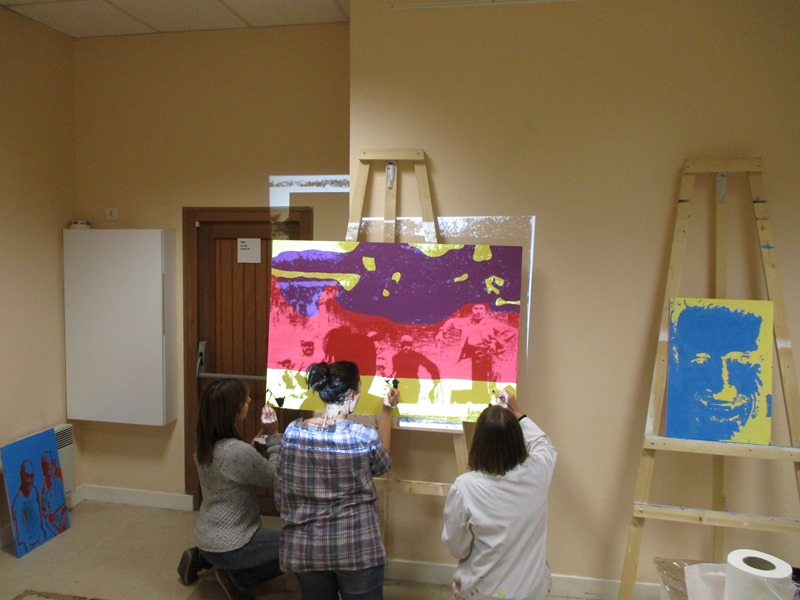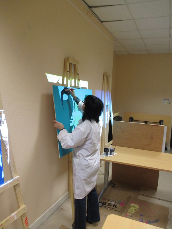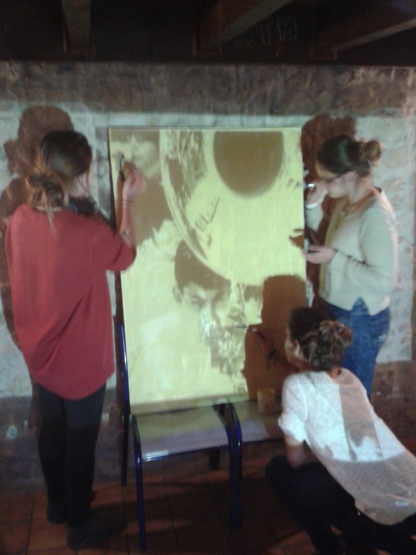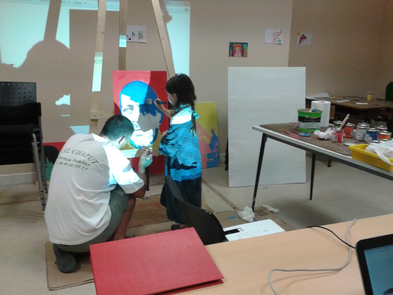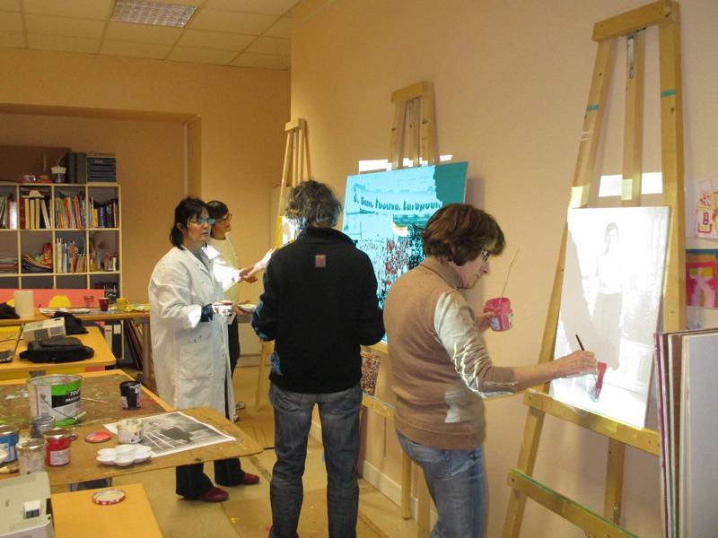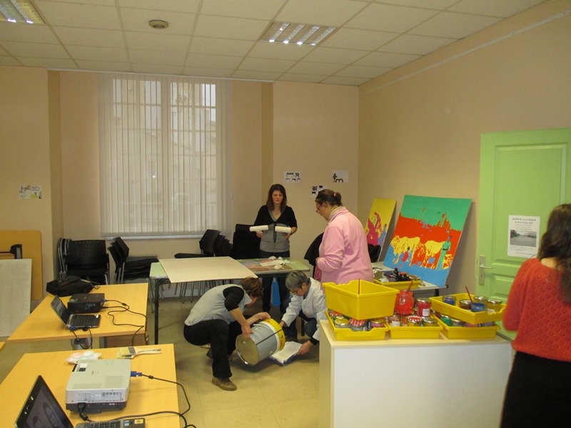 Tous les mardis après midi tous les partenaires se réunissent pour mettre en œuvre ce projet. Dans un premier temps la création des œuvres avaient lieu au sein de la cafétéria, aujourd’hui l’équipe a déménagé dans le local photo.