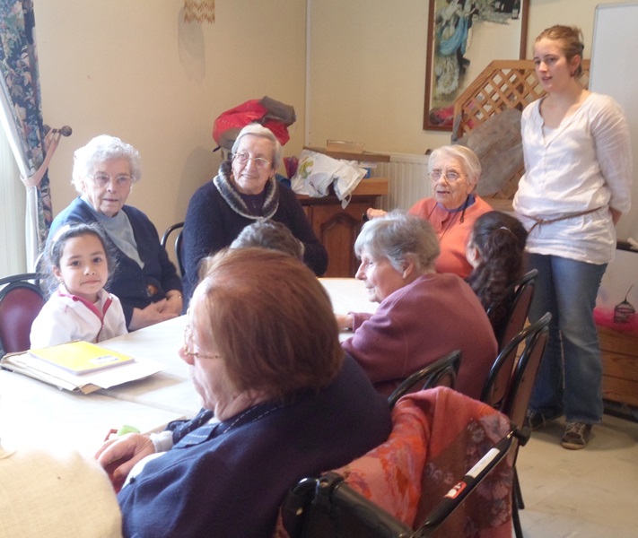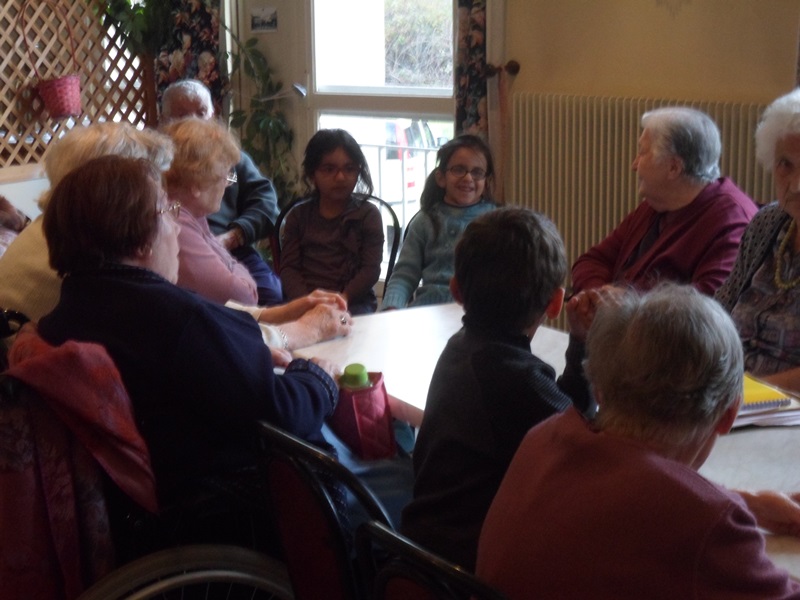 Les enfants de CP-CE1 de l’atelier “1000 et 1 devoirs” et les personnes âgées résidentes de l’EHPAD de la Ténarèze se sont retrouvées à quatre reprises pour participer au projet : “jouons la carte de la fraternité“.