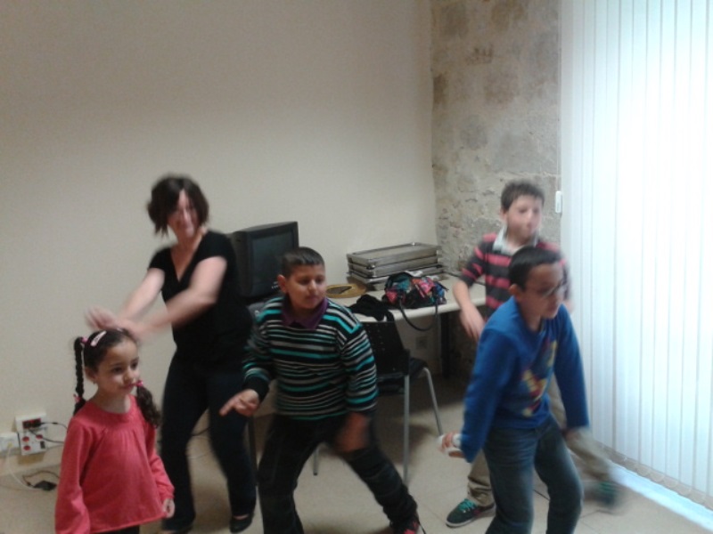 Vendredi 19 avril, une surprise attendait les enfants de l’atelier “1000 et 1 devoirs”. Pour fêter les vacances de printemps les animatrices de l’atelier ont proposé une séance de WII Dance.