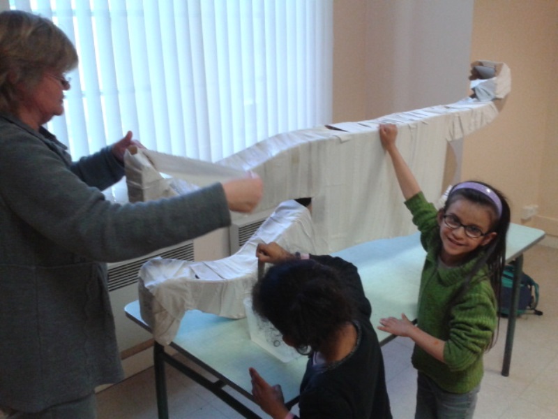 L’atelier participe également à la mise en place de la Fête du jeu organisé par la Ludothèque le samedi 25 Mai sur le thème des monstres et de se faire peur. Les enfants fabriquent donc une momie.