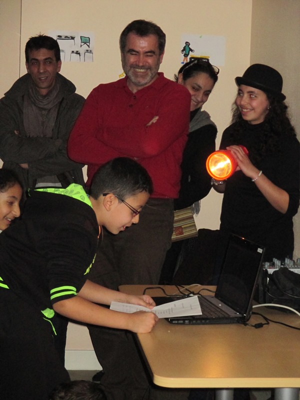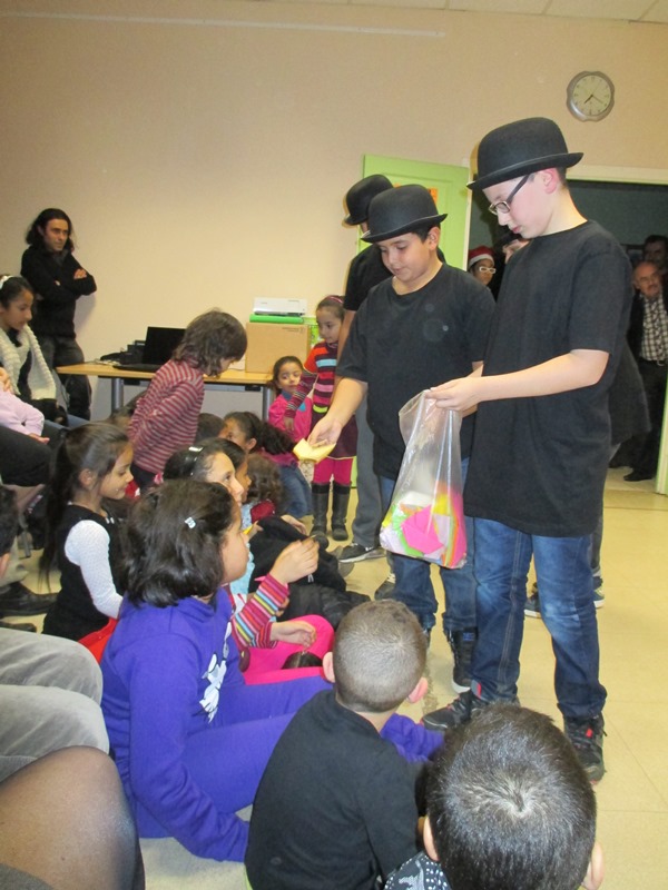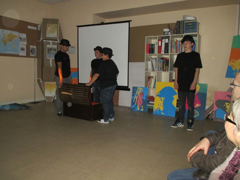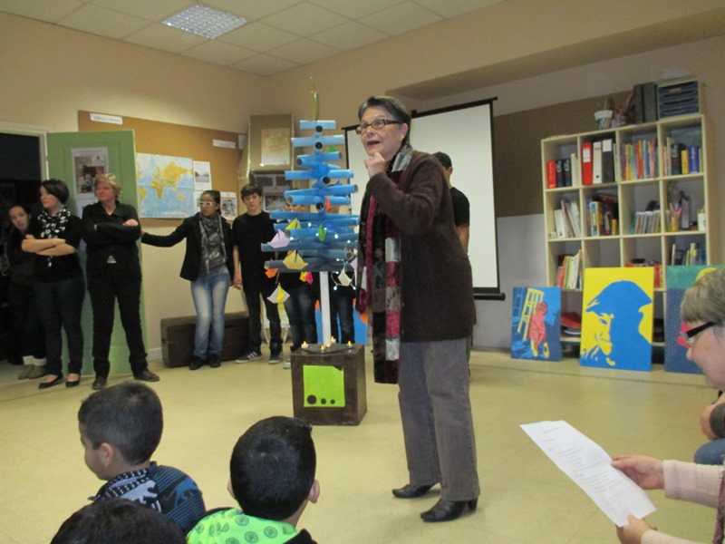 La présentation du fruit de 7 semaines de travail du groupe de collégiens de 1000 et 1 devoirs encadré par Stéphane et Pitto de la Boite à Jouer. Un petit spectacle mêlant le mime et le théâtre sur la musique de The Artist. Un final où tous les spectateurs ont été invités à participer pour décorer le sapin.