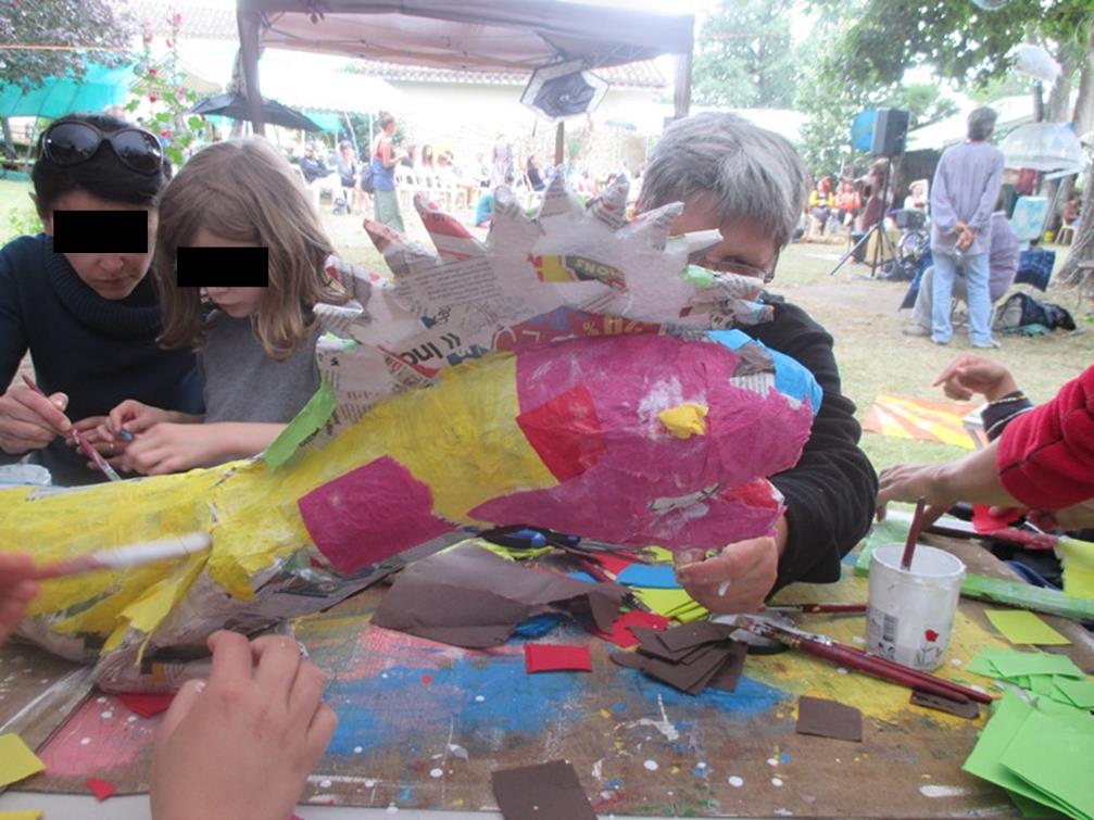 3 bénévoles de l’Espace Gambetta ont proposé aux enfants et à leurs parents la création de cadres et de jeux de sociétés. La décoration d’un lézard géant a enchanté tous les visiteurs.