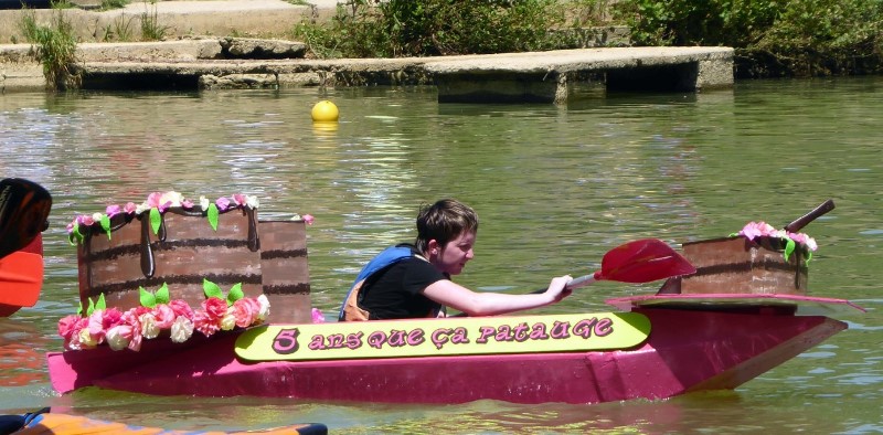Avant de profiter de la course des paquebots, la course des canots a rencontré un franc succès. Les enfants avaient fabriqué de superbes bateaux à partir d’objets recyclés : bouteilles en plastique, bouchons, tube de papier, etc…