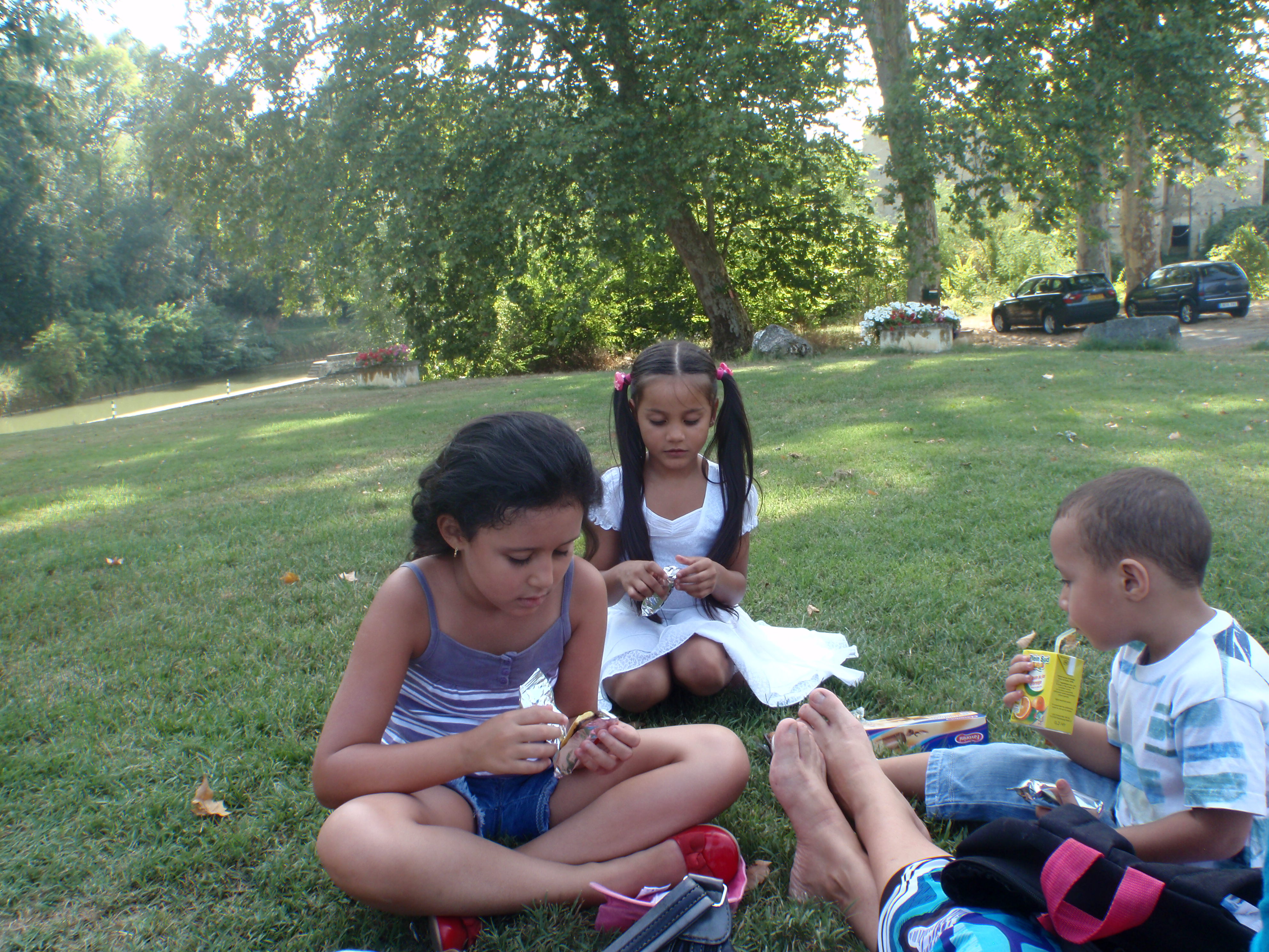 Mercredi 22 Août: Après la visite de la Bastide de Vianne à l’aide d’audioguides. Nous avons partagé un bon gouter au bord de la Baise.