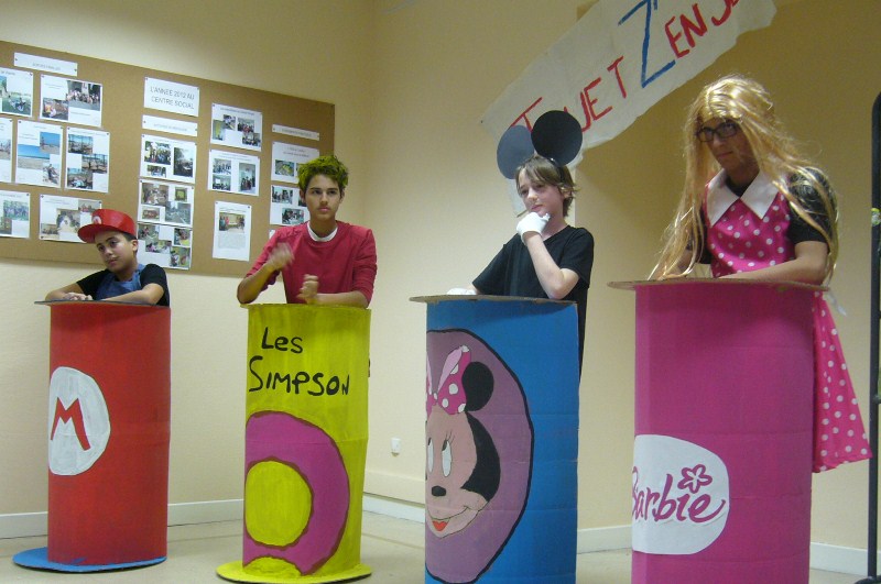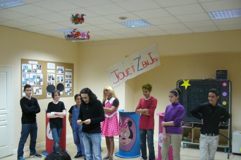 Vendredi 21 décembre a eu lieu la première représentation du spectacle “joue Z’en Jeu”. Un mini spectacle inspiré par l’exposition “plus d’éthique au pied du sapin” mis en place par la ludothèque au Centre Social. Avant la grande première les jeunes de l’atelier 1000 et 1 devoirs ont ainsi bénéficié de 10 séances d’initiation au théâtre avec Stephane Dufau de la Boite à jouer.